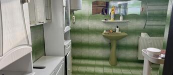 A közlekedőből egy tágas fürdőszoba és egy hálószoba nyílik.