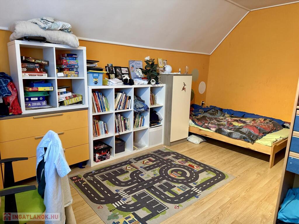 A tetőtérben: előtér beépített szekrényekkel, 2 hálószoba (az egyik erkélyes), fürdő + WC, valamint egy gardróbnak alkalmas helyiség.