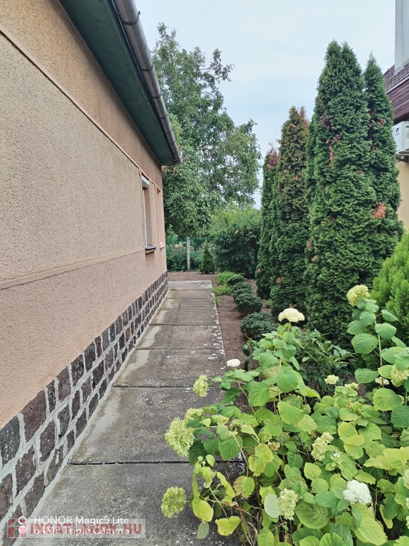 A ház 1970-ben épült, falazata vegyesen tégla és vályog, hátsó része szilikát. A fűtést hőtárolós villanykályha, gázkonvektor és elektromos fűtőpanel biztosítja, az egyik szobába légkondícionáló is beszerelésre került. Az épülethez nagyméretű hátsó tároló helyiség, pince és szerszámtároló tartozik, ipari áram is rendelkezésre áll. A kert gyümölcsfákkal van beültetve, a locsolást ásott kút és hálózati kerti csap biztosítja.