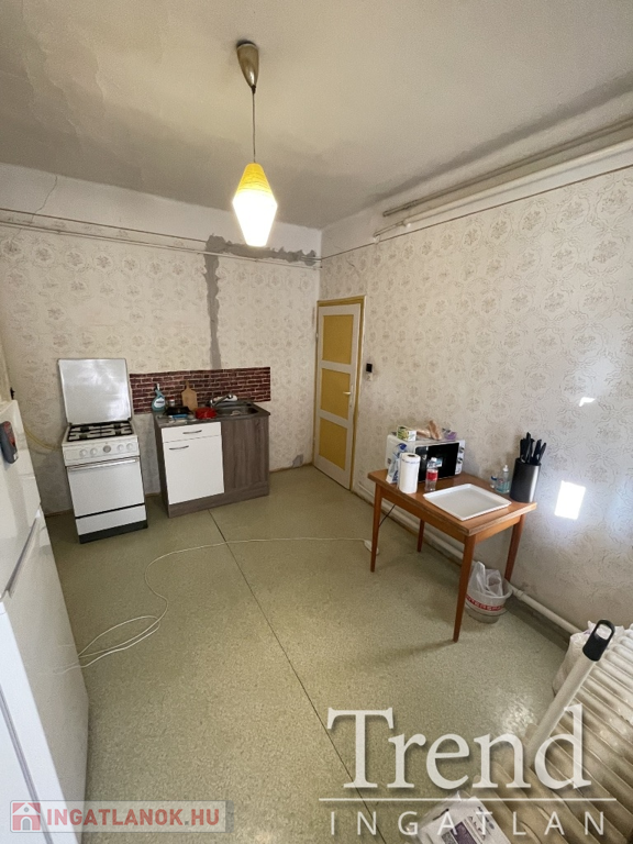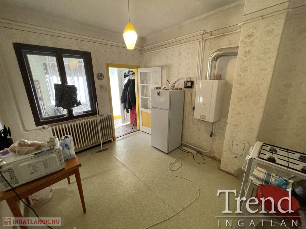Az előszobába belépve balra a konyha található, melyből nyílik a fürdőszoba. Az előszobából tovább haladva egy normál méretű szoba található, mely akár nappaliként is szolgálhat, ebből nyílik az utca felőli nagy szoba. Ezeknek az ablakai cserélve vannak + redőnnyel szerelve.