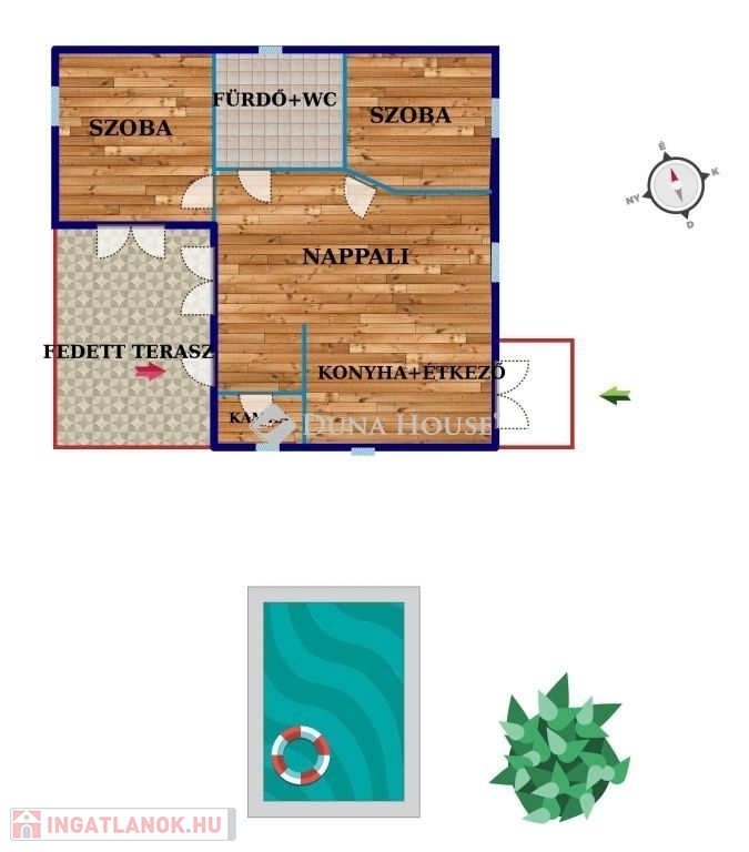 ELADÓ ALBERTIRSÁN egy 64 m2-es családi ház, beépített medencével az udvaron! Az ingatlan könnyűszerkezetes 2020-ban épült ami egy 2106 m2-es telken helyezkedik el. Kialakításra került 2 szoba, nappali amerikai konyha, fürdő+wc, kamra, 20,4 m-es fedett terasz. Lehetőség adott a hálószobából és nappaliból is a kijárás a teraszra. Fűtése (BVF HEATING TÍPUSÚ) padlófűtés amit minden helyiségben külön termosztát szabályozza a hőfokot. Gree márkájú inverteres klíma az árban ami hűtő és fűtő. Fürdőszobában hidegburkolat, többi helyiségben meleg burkolat. Ikea típusú matt fekete konyhabútor az árban. H tarifa nélkül 24000ft/hó a villany fűtéssel, meleg vízzel, medence vízforgatóval. Ha van H tarifa ez felére csökkenthető. Redőny az összes ablakon megtalálható.