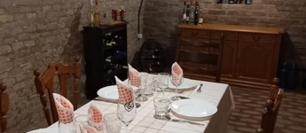 Vendégek részére felszerelt közös konyha, ápolt udvar és hangulatos borospince