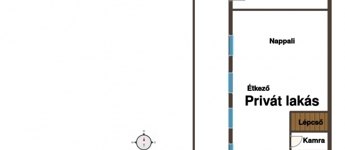 Privát lakótér: 3 szoba + nappali + dupla komfort (összesen 100 m²), modernizált, külön bejárattal