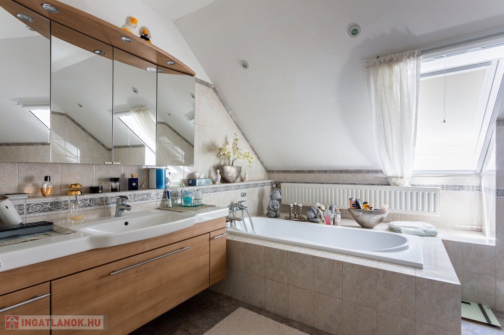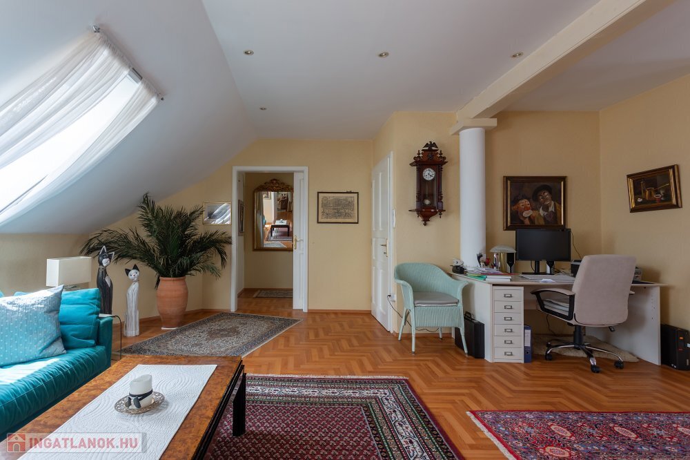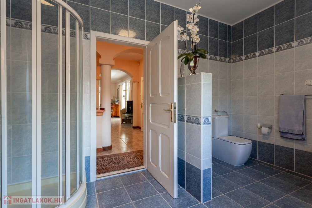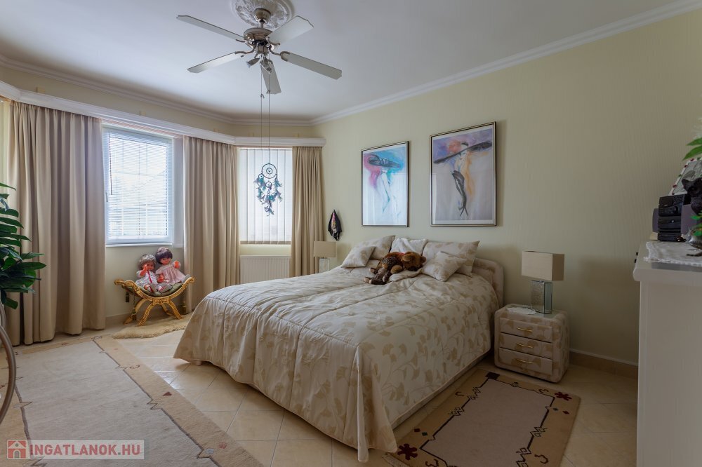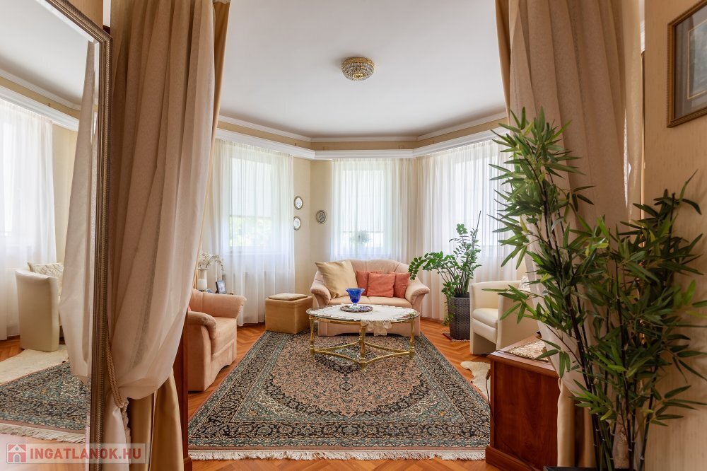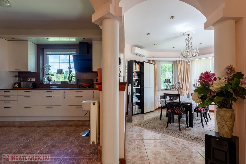 A 280 m²-es, kiváló állapotban lévő, napfényes lakóingatlan egy 1762 m²-es, parkosított telken helyezkedik el, medencével, borospincével és duplagarázzsal kiegészülve.