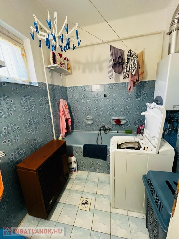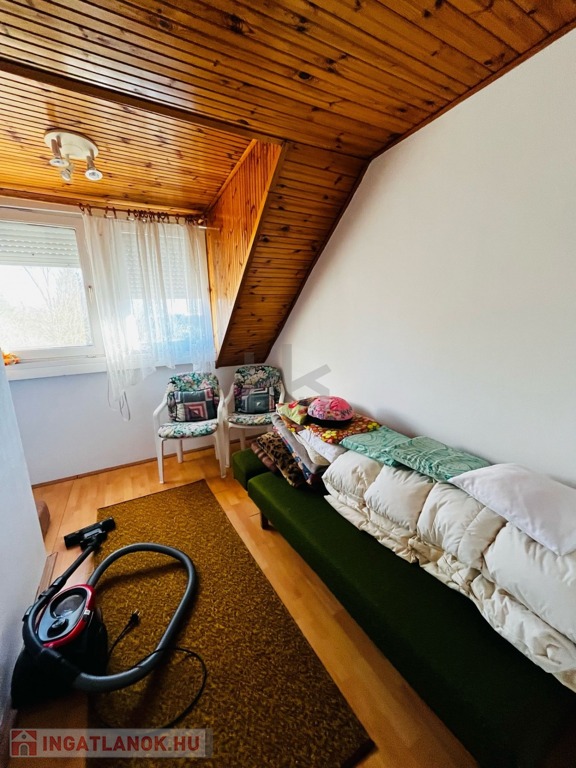 - a második lakásban pedig a földszinten egy szoba, konyha-étkező, kamra, wc, fürdőszoba ( fürdőkáddal ), közlekedő , a tetőtérben két szobával bővítették a teret