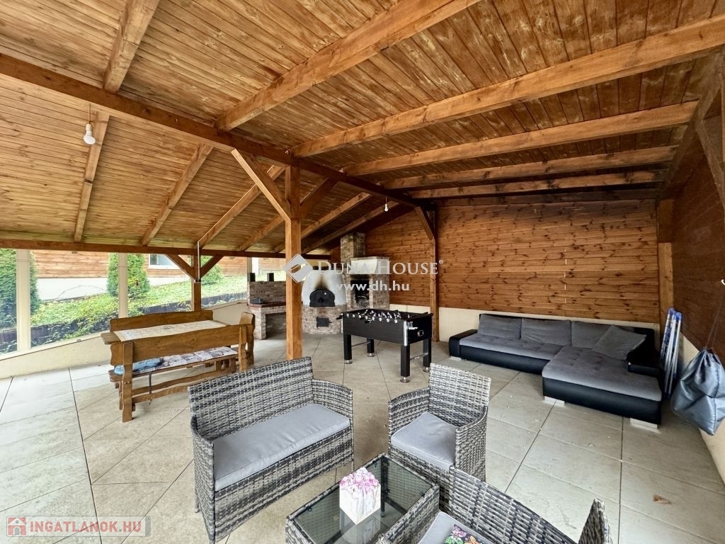 Bakonyszentlászló-i vendégház az erdő ölelésében! Elvarázsolt helyet keresel, ahol kikapcsolódhatsz a természet közepén? Most megtaláltad!Ez a 7000 nm-es telken fekvő, új építésű, mégis a természetbe simuló vendégház tökéletes választás, akár befektetési célra, akár saját használatra. A ház tágas és kényelmes, 10-12 fő számára biztosít pihenést, így baráti társaságoknak vagy családoknak is ideális.Mit kínál ez a csodahely?- Jakuzzi, ahol lazíthatsz a csillagos ég alatt.- Fűthető dézsa a hűvösebb napokra.- Medence a nyári felfrissüléshez.- Hangulatos kandalló a hideg estékre.- Terasz, ahol reggelente a madárcsicsergést hallgatva kávézhatsz.- Grillezés- és bográcsozási lehetőség+ kemence.- Ping-pong, csocsó.- Bőséges parkolási lehetőség.Mindez szomszédoktól távol, az erdő csendjében, ahol a természetes szépség veszi körül minden napodat.Ne maradj le erről a páratlan lehetőségről! Lépj kapcsolatba most, és fedezd fel személyesen ezt az idilli otthont vagy vendégházat!