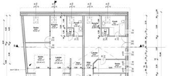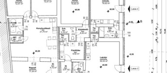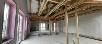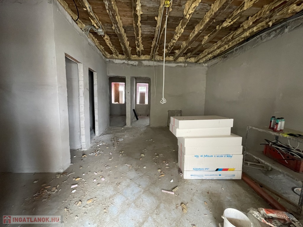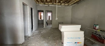 Az alsó szinten a tervek szerint 4 lakás lett kialakítva, ahol a belső falak már állnak, így a vásárló könnyen befejezheti az építkezést.