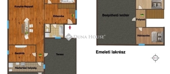 A tetőtér jelenleg részben beépített, így a lakóterület bővítése könnyedén megvalósítható.