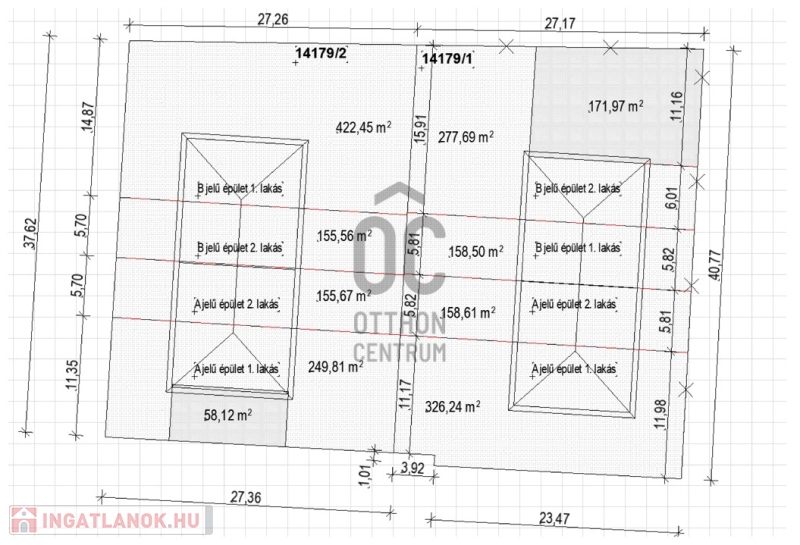 Az ingatlanok telekhányada eltérő, ezért a lakóegységek árai is különbözőek. A műszaki tartalom egységes, annak tartalmáról érdeklődjön!