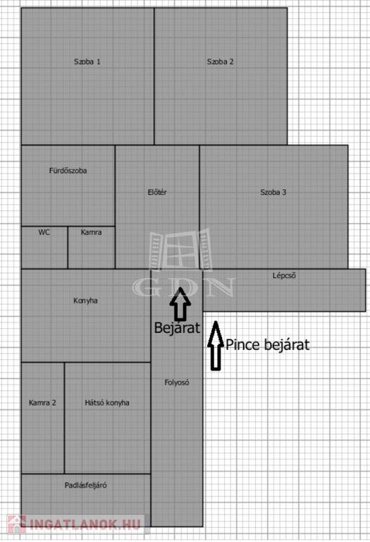 Helyiségek: 3 tágas szoba, 2 konyha, 2 kamra – praktikus elrendezéssel