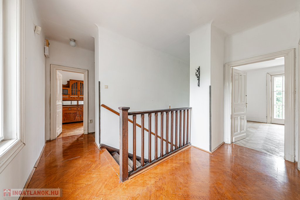 Az átmenő forgalomtól mentes utcában található, 600 nm-es telekre az 1930-as években épített hat szobás villára jellemzőek a nagy, tágas terek, praktikus kialakítása ideális választássá teszi a kényelmes életteret kedvelők számára, napsütötte szobáinak mindegyike 20-30 nm. Az épület jelenlegi beosztása szerint két 105 nm-es lakószintje külön lakásként használható, kellemes, nagyméretű teraszokkal növelve az elegáns életteret. A lakószintek alatti kiszolgáló szinten kényelmesen megközelíthető, 20 nm-es garázs található, közvetlen bejárással a lakótérhez, valamint 50 nm-en fűtő-, háztartási- és tárolási célra szolgáló, vagy akár fitness/wellness célra használható helyiségek. Az épület tetőterében további 100 nm lakótér kialakításával bővíthető még az ingatlan.