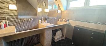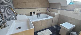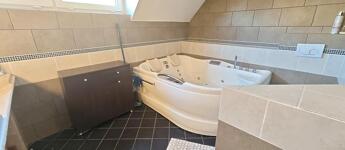 Az emeleten egy nagy szülői háló kapott helyett (ez régen 2 külön szoba volt), egy gyerek háló/dolgozó és egy kényelmes fürdőszoba.