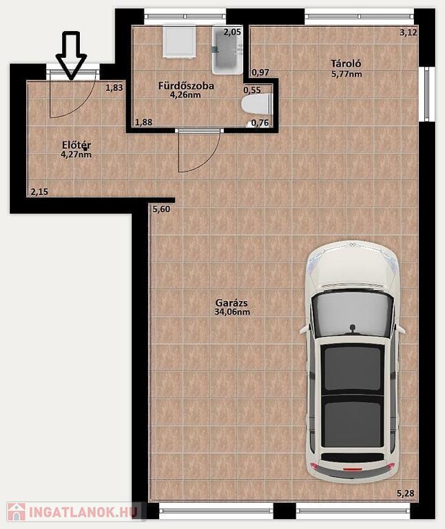 Az alsó szinten kapott helyet a 34nm-es garázs, további tárolásra, barkácsolásra alkalmas térrel, plusz egy mosókonyha.