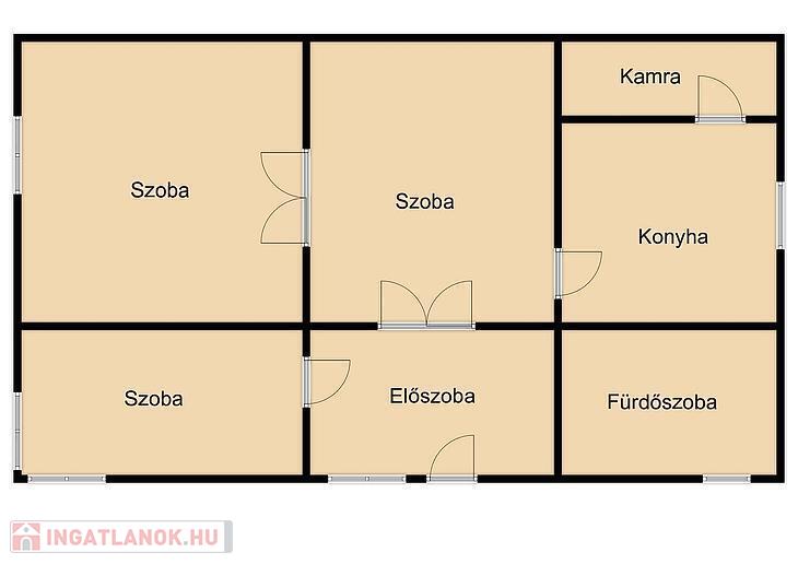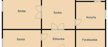 A ház jelenlegi elosztása 3 szobából, konyhából és egy fürdőszobából áll.