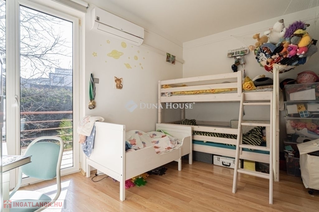 Budapest III. kerületében, a Testvérhegy és a Harsánylejtő találkozásánál, csendes, zöldövezeti környezetben kínálunk megvételre egy kiváló állapotú, négyszintes, önálló helyrajzi számmal rendelkező ikerházfelet. A környék kertvárosias hangulatú, jól megközelíthető, a 260-as busz megállója pár perces sétával elérhető.