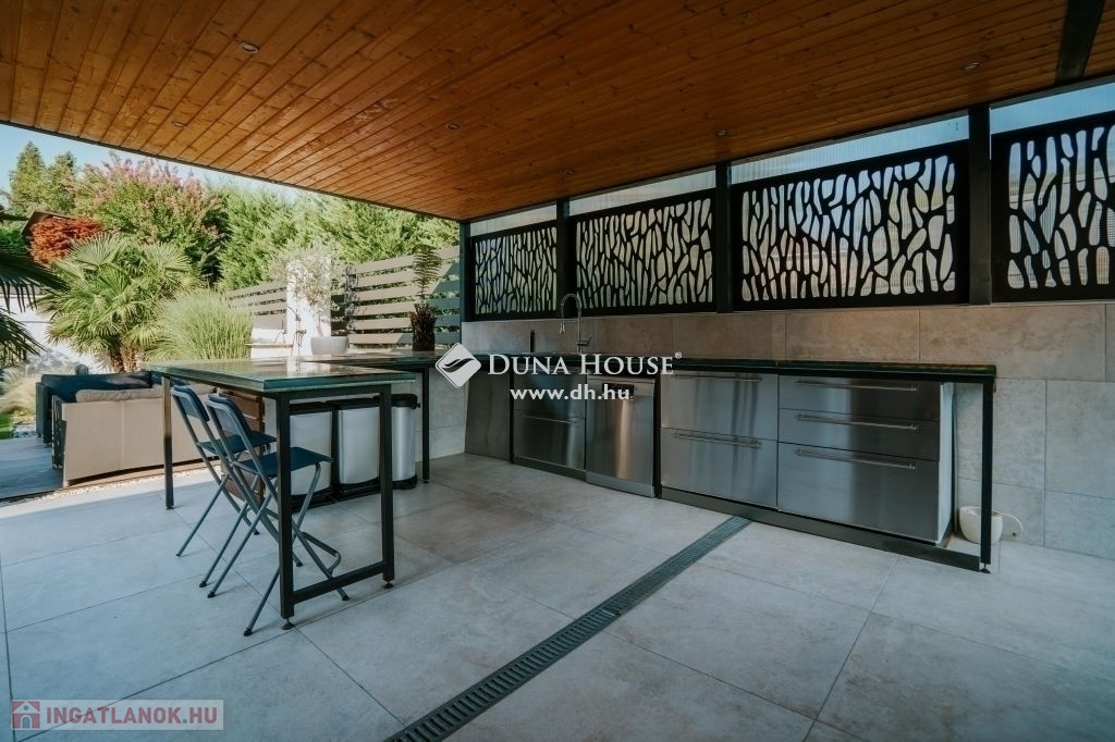 A mediterrán stílusú kertben egy 22 m²-es, fűthető medence várja, amely az év minden szakaszában használható. A 20 m²-es nyári konyha Európa legnagyobb epoxigyanta pultjával és modern felszereltségével tökéletes helyszínt kínál családi és baráti összejövetelekhez. A kert automata öntözőrendszerrel és csöpögtető szisztémával gondozott, így Önnek csak a pihenésre kell koncentrálnia.