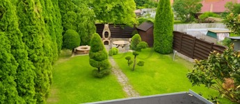 Az ingatlanhoz tartozik egy teljesen leválasztott, privát telekterület (300 m²), amelyet kizárólag a tulajdonosok használhatnak. A telken belül kialakított fedett kocsibeálló két autó számára, az ingatlan előtt pedig további négy autó parkolására van lehetőség.