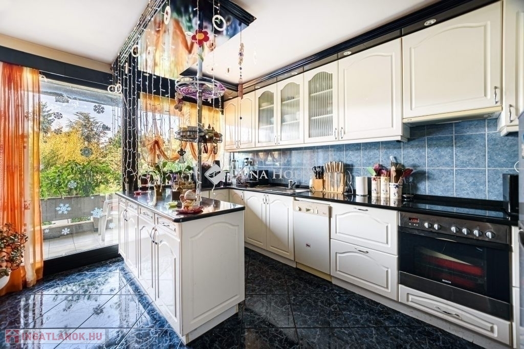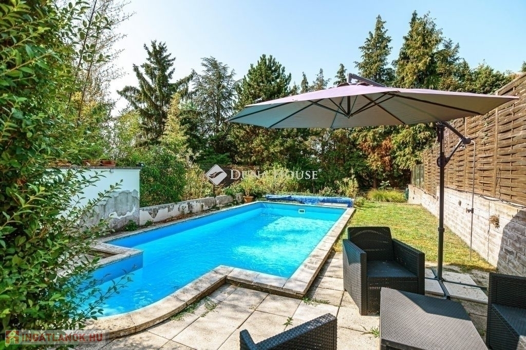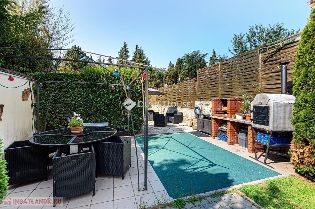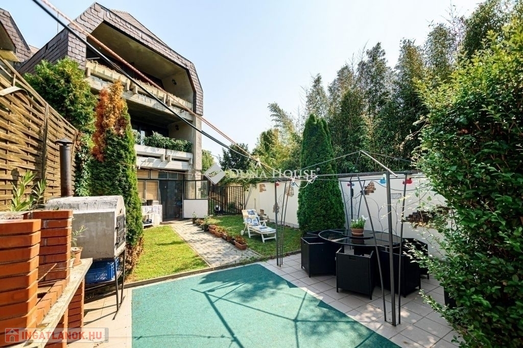 MAGASÚTI CSALÁDI OTTHON ELADÓ AZ ÖRDÖGOROM PARK SZOMSZÉDSÁGÁBANEladásra kínálunk egy 12. kerületi magasúti sorházi 192m2-es családi otthont, 505 m2-es telken. Az épület 1983-ban épült, közművesített téglaépület Részét képezi két 24 m2-es garázs és az udvaron több autó parkolására alkalmas parkolási lehetőség. A ház 2010-ben esett át felújításon és tavaly egészségügyi festésen.Kert:- homokszűrős medence 22m2 (nem füthető), masszázs funkciókkal és LED es világítással körbe- teraszos kert, termesztéshez alsó kiskert, locsolóvíz- kemence, kerti grill, kerti konyhaÉpület paraméterei:- A lécsőzetes eltolásnak köszönhetően a szuterénszint kertkapcsolattal rendelkezik, ezáltal, egy különálló 30 m2-es garzonlakás, ezen felüli fürdő helység kialakítása is megoldható. - gáz kazán fűtés, padlófűtés, 3 db (Wifi) klíma, illeteve egy hangulatos KANDALLÓ biztosítja a meleget.- nappali + konyha + étkező és 3 szoba (melyek közül kettő jelenleg egybe van nyitva)- 2 fürdő (kádas és zuhanyzós) + 3 wc- konyhából nyíló kamra- 4 db 10m2-es terasz tartozik hozzá, melyekről csodaás PANORÁMA tárul elénk.További kérdéseikkel keressenek bizalommal.