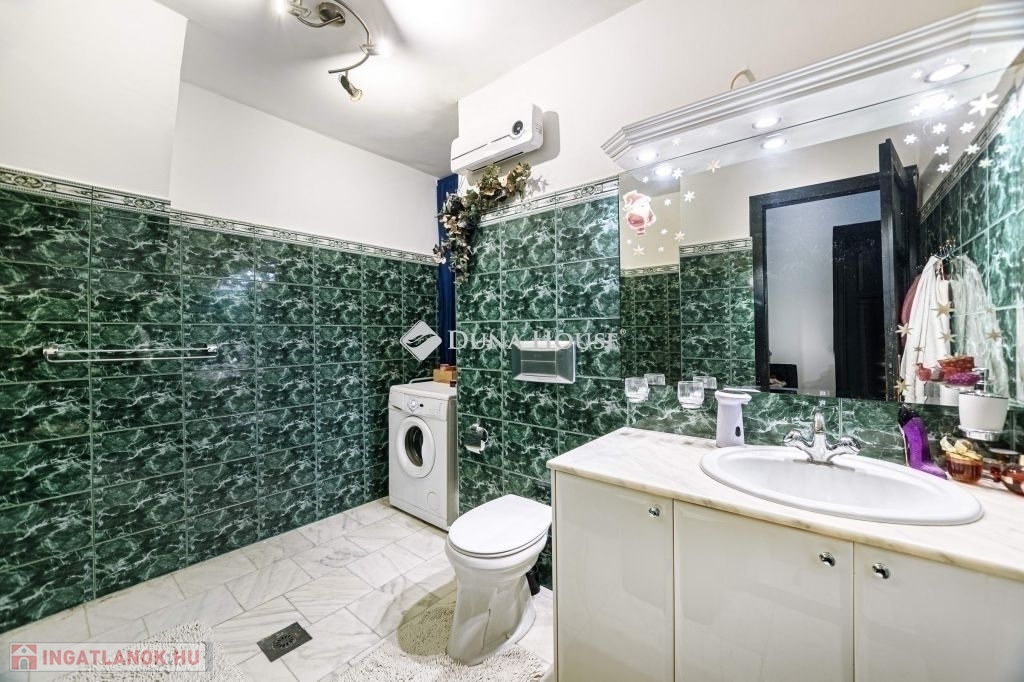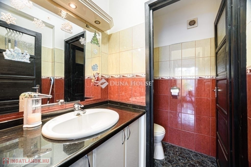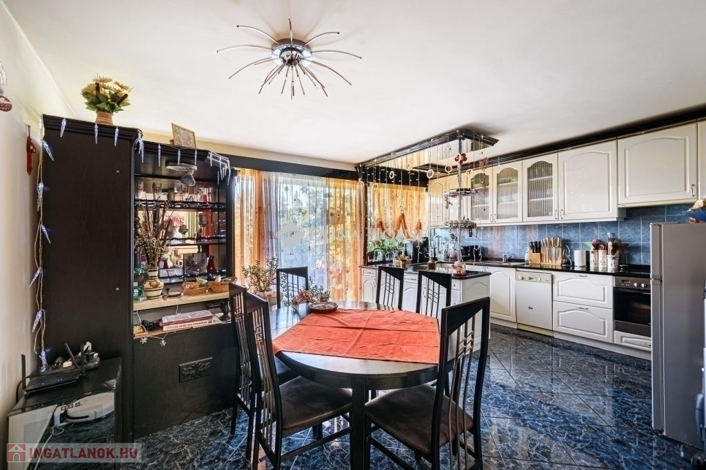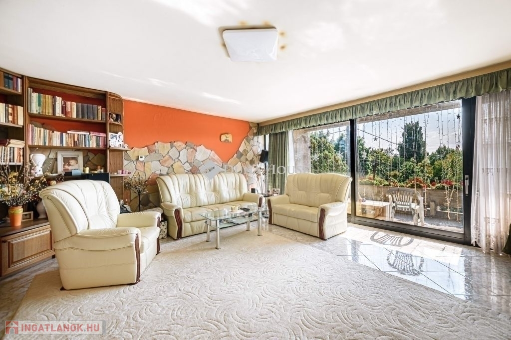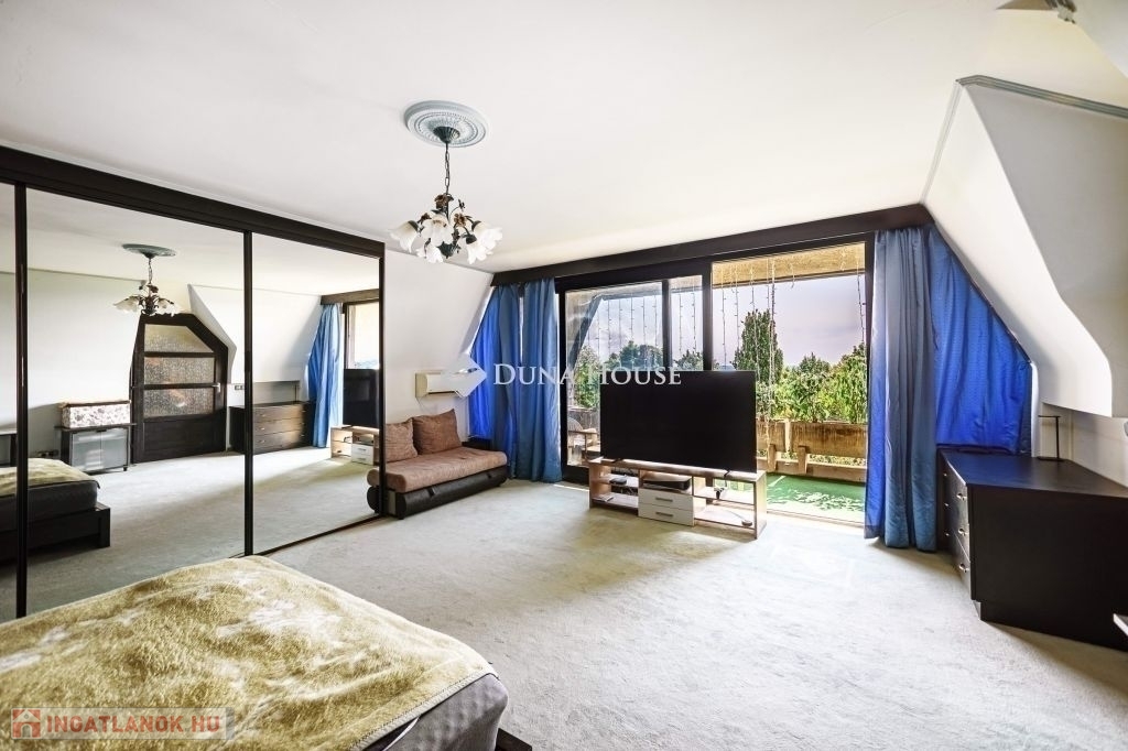 MAGASÚTI CSALÁDI OTTHON ELADÓ AZ ÖRDÖGOROM PARK SZOMSZÉDSÁGÁBANEladásra kínálunk egy 12. kerületi magasúti sorházi 192m2-es családi otthont, 505 m2-es telken. Az épület 1983-ban épült, közművesített téglaépület Részét képezi két 24 m2-es garázs és az udvaron több autó parkolására alkalmas parkolási lehetőség. A ház 2010-ben esett át felújításon és tavaly egészségügyi festésen.Kert:- homokszűrős medence 22m2 (nem füthető), masszázs funkciókkal és LED es világítással körbe- teraszos kert, termesztéshez alsó kiskert, locsolóvíz- kemence, kerti grill, kerti konyhaÉpület paraméterei:- A lécsőzetes eltolásnak köszönhetően a szuterénszint kertkapcsolattal rendelkezik, ezáltal, egy különálló 30 m2-es garzonlakás, ezen felüli fürdő helység kialakítása is megoldható. - gáz kazán fűtés, padlófűtés, 3 db (Wifi) klíma, illeteve egy hangulatos KANDALLÓ biztosítja a meleget.- nappali + konyha + étkező és 3 szoba (melyek közül kettő jelenleg egybe van nyitva)- 2 fürdő (kádas és zuhanyzós) + 3 wc- konyhából nyíló kamra- 4 db 10m2-es terasz tartozik hozzá, melyekről csodaás PANORÁMA tárul elénk.További kérdéseikkel keressenek bizalommal.