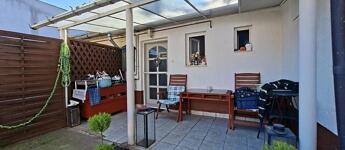 A lakás külön bejárattal rendelkezik, saját, fedett 6 m²-es teraszról közelíthető meg, mely egy teljesen privát, 100 m²-es kertrészhez kapcsolódik – ideális lehet pihenéshez, kertészkedéshez vagy akár kisállattartáshoz is.