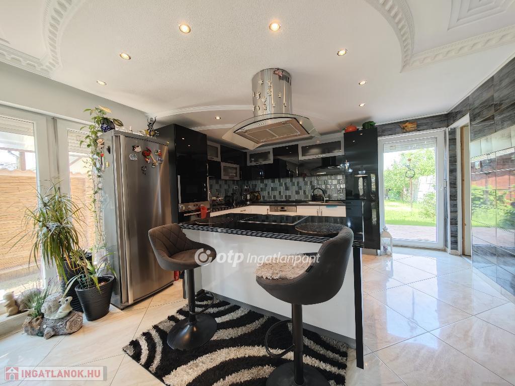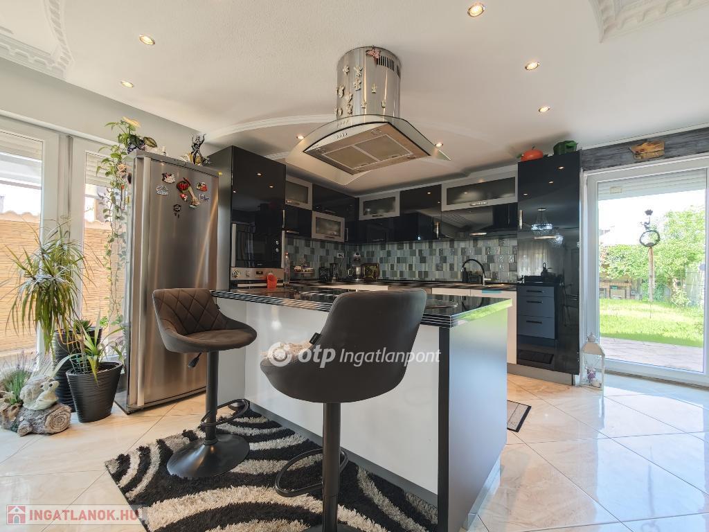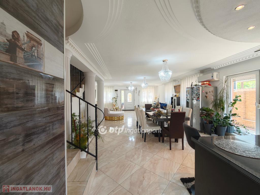 Kétszintes, duplakomfortos, gépesített amerikai-konyhás nappalival és 4 hálószobával rendelkező, berendezett, bútorozott családi ház eladó Budapest XV. kerületében.
