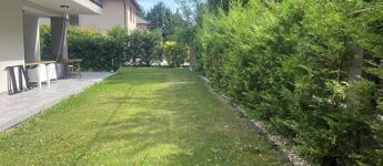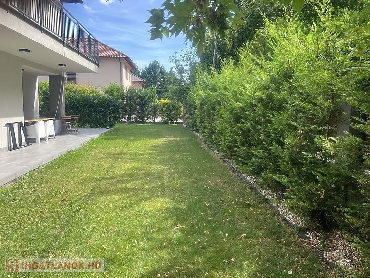 Az ingatlan egy 500 m²-es, gondosan parkosított telken helyezkedik el. A kert füvesített, igényesen beültetett növényekkel, valamint automata öntözőrendszerrel felszerelt, így nemcsak esztétikus, hanem könnyen karbantartható is. A közel 39 m²-es terasz kiváló helyszíne lehet családi és baráti összejöveteleknek, vagy akár a nyugodt, mindennapi kikapcsolódásnak.