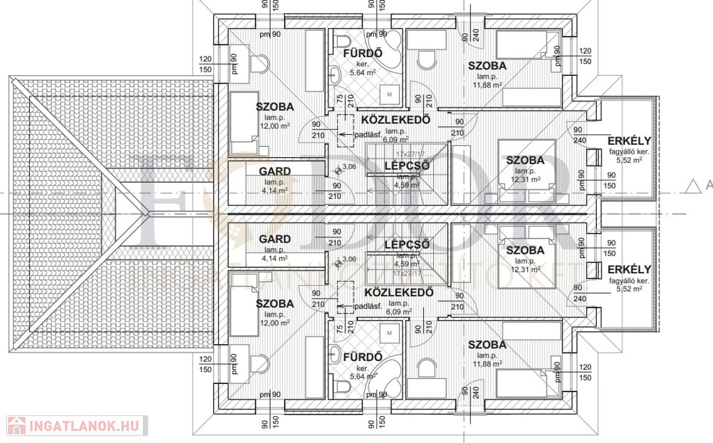 • Hasznos lakóterület: 114,85 m² – Tágas amerikai konyhás nappalik, 4 külön be-járatú hálószoba és gardróbszoba.
