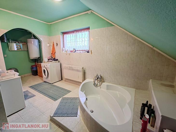 FÉG kazán, hűtő-fűtő klíma és gáz bojler. A házban az ivóvíz minőségéről egy vízlágyító, valamint a felső szinten egy vízszűrő gondoskodik.
