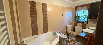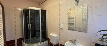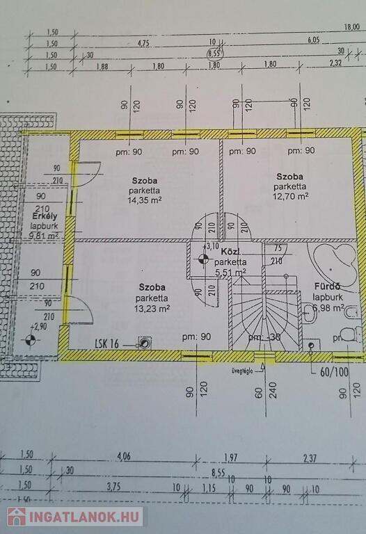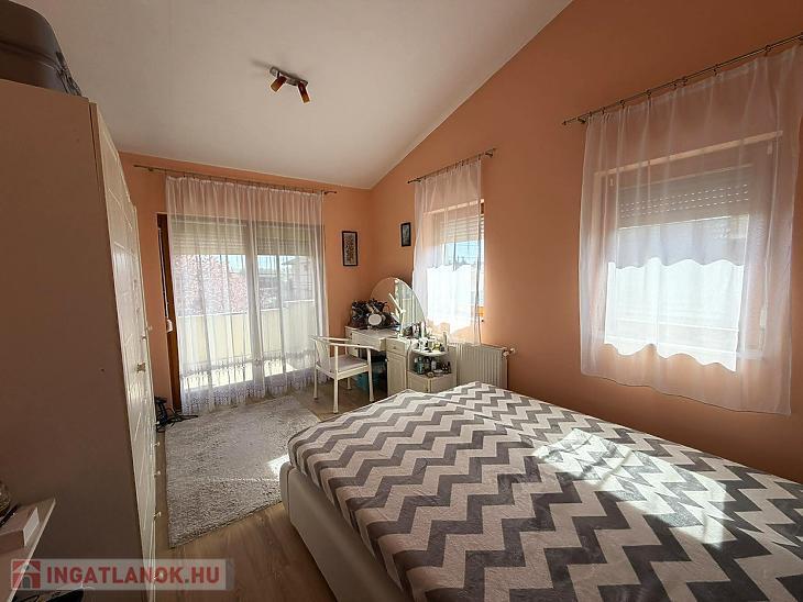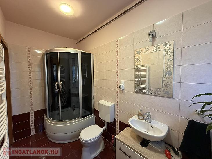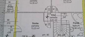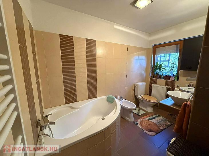 Emelet: 3 szoba, kádas fürdőszoba + wc, közlekedő, erkély.