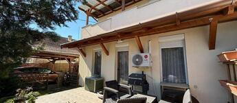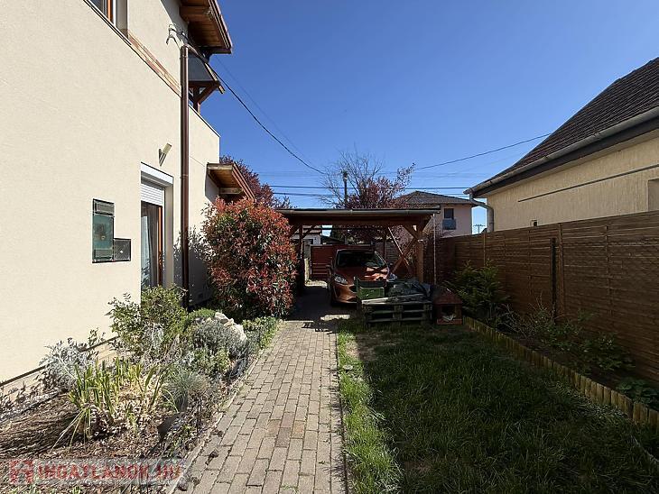 XVII. KERÜLETBEN, RÁKOSCSABA-ÚJTELEPEN ELADÓ EGY 117 NM-ES, JÓ ÁLLAPOTÚ, KÉTSZINTES IKERHÁZFÉL, 220 NM-ES TELEKKEL, TÁROLÓVAL ÉS FEDETT KOCSIBEÁLLÓVAL.