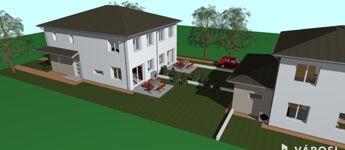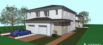 Eladó Budapest egyik legkedveltebb városrészében, a 18. kerület Erdőskertben, egy új építésű 118 m²-es ikerfél, 12,34 m2-es terasszal, 293 m2-es leválasztott telekrészen.