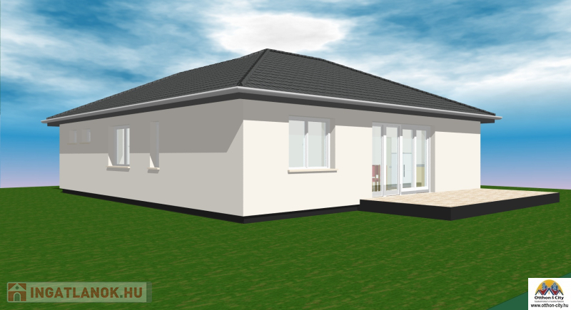 A XVIII. zöldövezetében, csendes mellékutcában, eladó egy újépítésű egyszintes 117 nm-es, 4 szobás, garázsos, teraszos, önálló családi ház. Az ingatlan minőségi anyagokból készül, szaniterek,burkolatok,falszinek, még választhatók. A kerületben a kivitelező által épített számos referencia munka, bármikor megtekinthető.