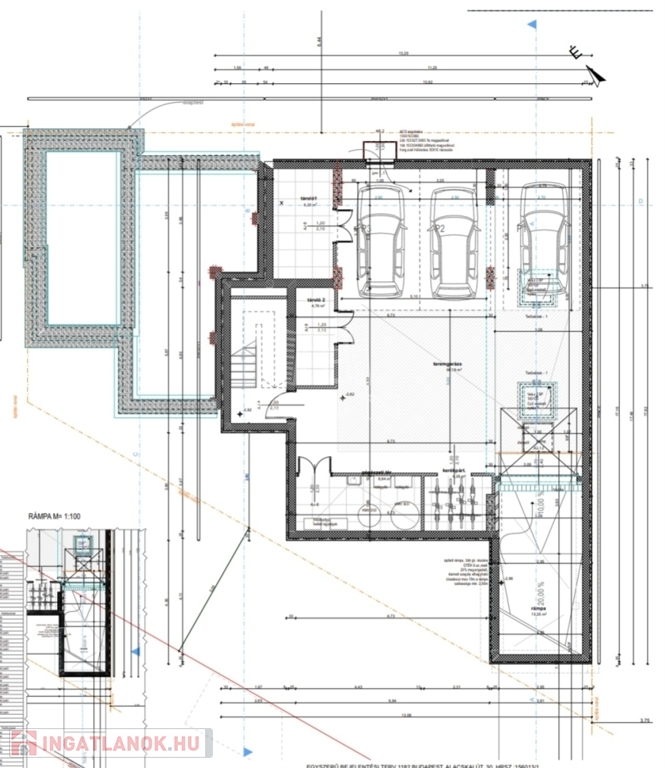 A kellő gondossággal épült, szerkezetkész állapotban lévő, több lakás kialakítására is alkalmas ingatlan szuterén szintjén több autó számára parkolási lehetőség biztosított.