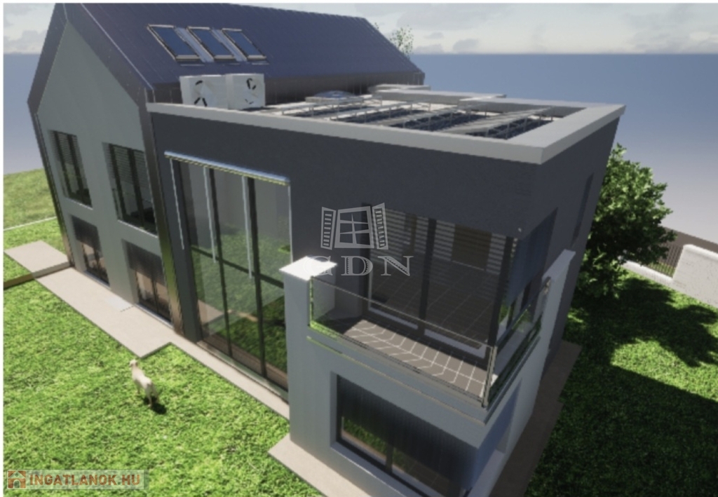 XVIII. kerület új parcellázású részén, jó ellátottság mellett, aszfaltozott utcáról nyíló, 750 m2-es telken elhelyezkedő, körbejárható, egyedi formatervezésű, három szintes, méretes belső terekkel rendelkező, panoráma ablakokkal szerelt, hőszivattyú fűtésű családi házat kínálok eladásra.