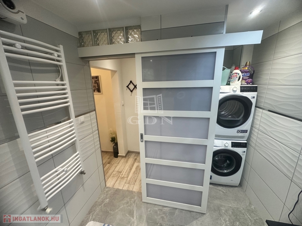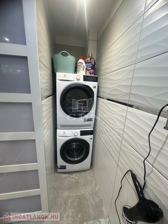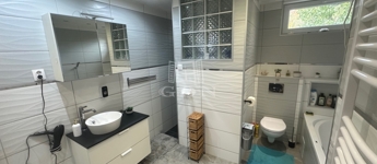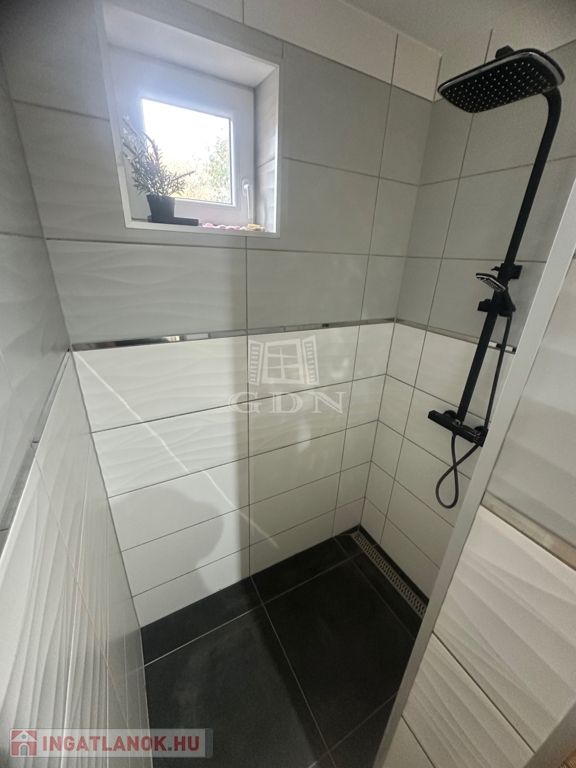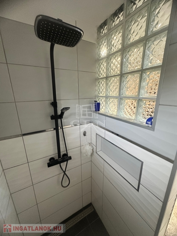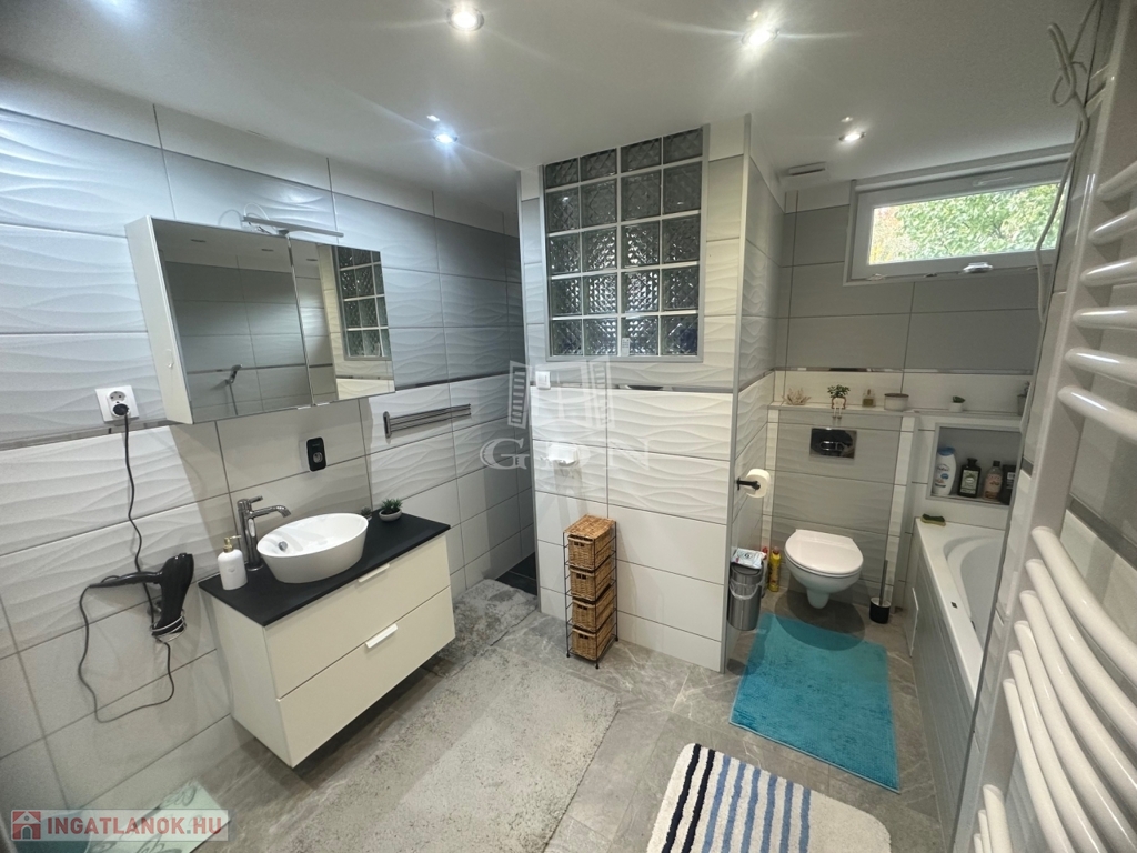 Mindkét szinten külön fürdőszoba található, saját bojlerrel, így a melegvíz-ellátás mindig zavartalan. A földszinti fürdőben kád és épített zuhanyzó is helyet kapott, míg az emeleten egy modern zuhanyzós kialakítás várja az ott lakókat.