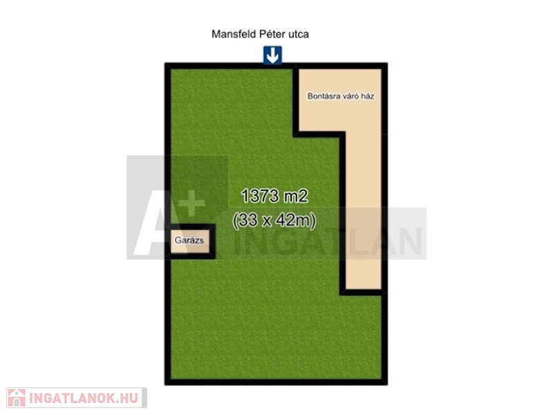 - 1361 m2-es telek (33m x 42m) 2/3-ad része:907m2