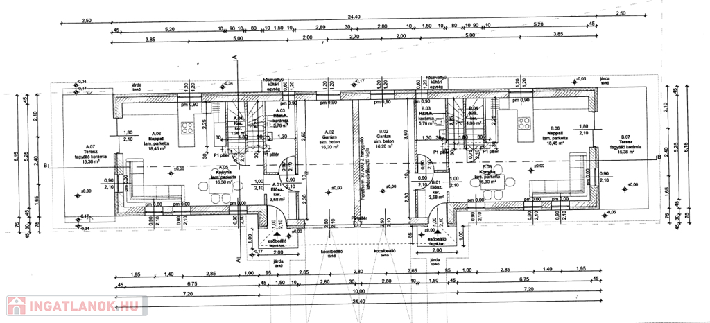 amerikai nappali+konyha 34,75 m2, terasz 15,38 m2.