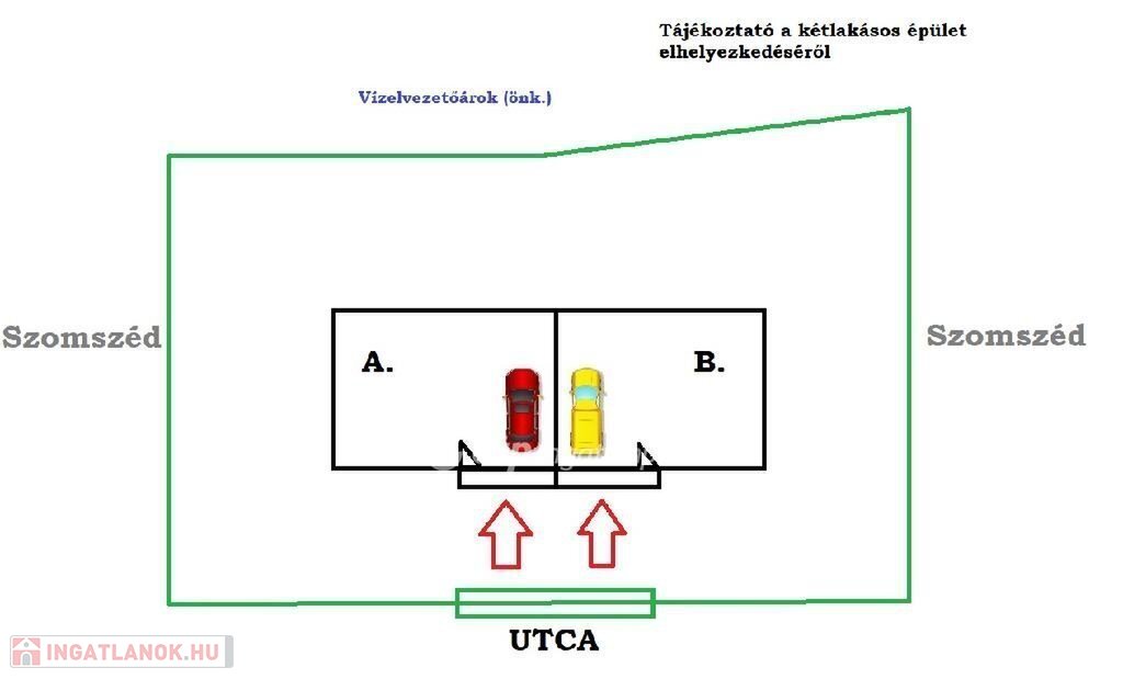 A telek remek adottságainak köszönhetően széles az utcafront, így a telket pont el lehetett felezni az A. és B. épületekhez. Mindkét lakrészhez saját garázs és kert, valamint önálló fogyasztásmérők lesznek.
