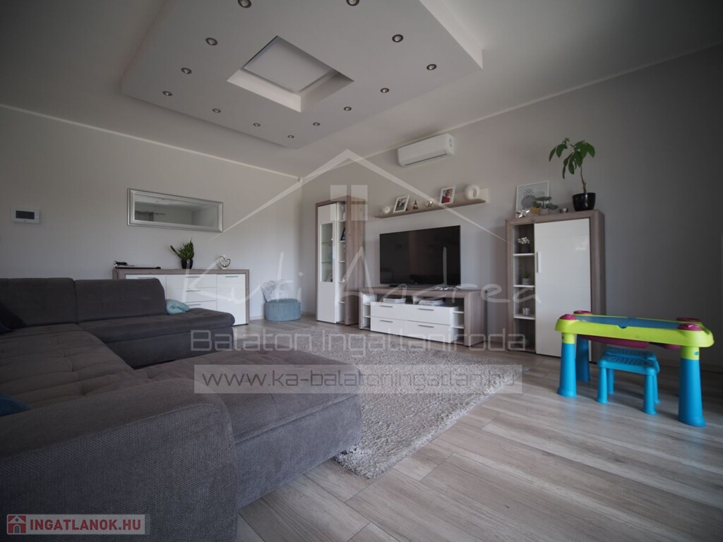 • A ház esztétikailag nagyon mutatós és praktikus. A teljes lakórész a vizes helységeket leszámítva jó minőségű egységes színű laminált parkettával lett lerakva. Vizes helységek kerámia burkolatot kaptak. A színek harmonizálnak és tisztítás szempontjából is praktikusak.