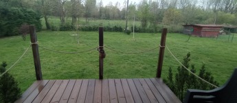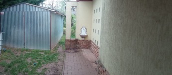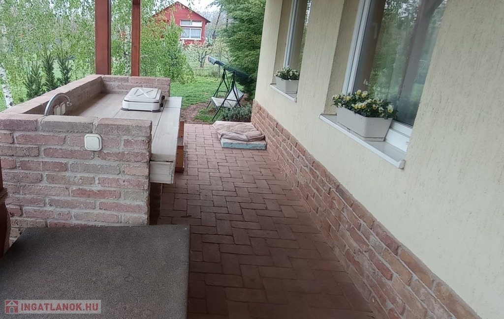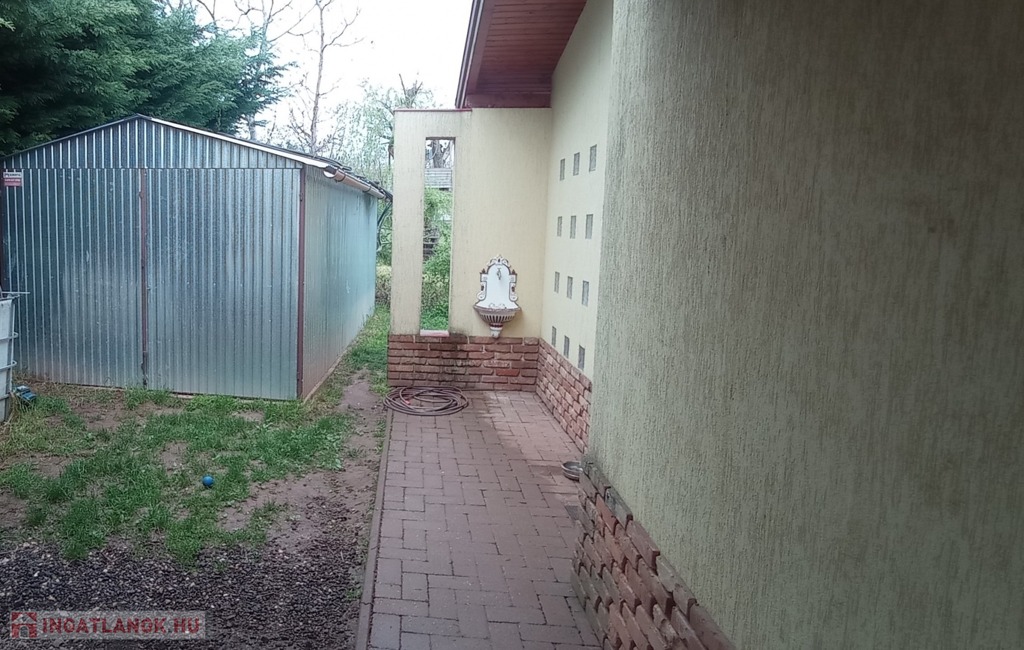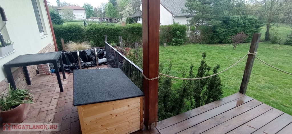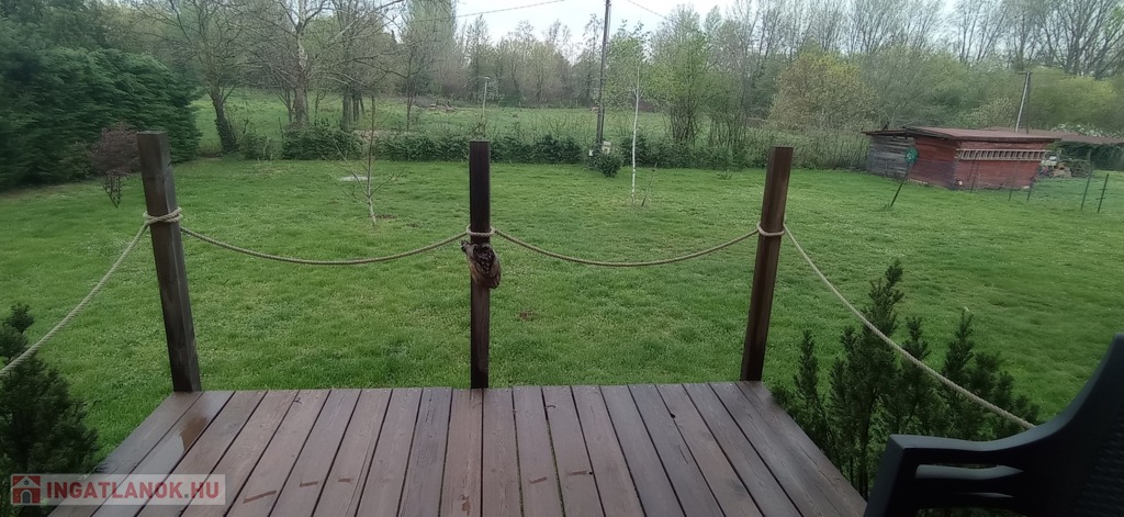 A 1044 nm-es telek gondozott, díszfákkal és termő cseresznyefával, öntözéséhez ásott kút áll rendelkezésre. A kert végében található melléképület ideális tárolásra.