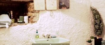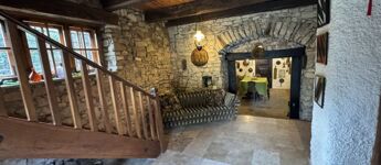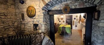 - kívül- belül fröccsentett fehér vakolat, nappali kőfalak, kőből kirakott gyönyörű áthidalók