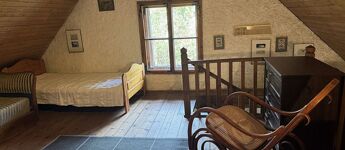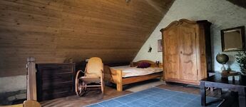 A ház további része is kőfalakból áll. Itt egy nappali, hálószoba került kialakításra. Innen vezet egy fa lépcső a tágas tetőtérbe, ahol nagy belmagasságú, egy légterű háló található.