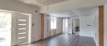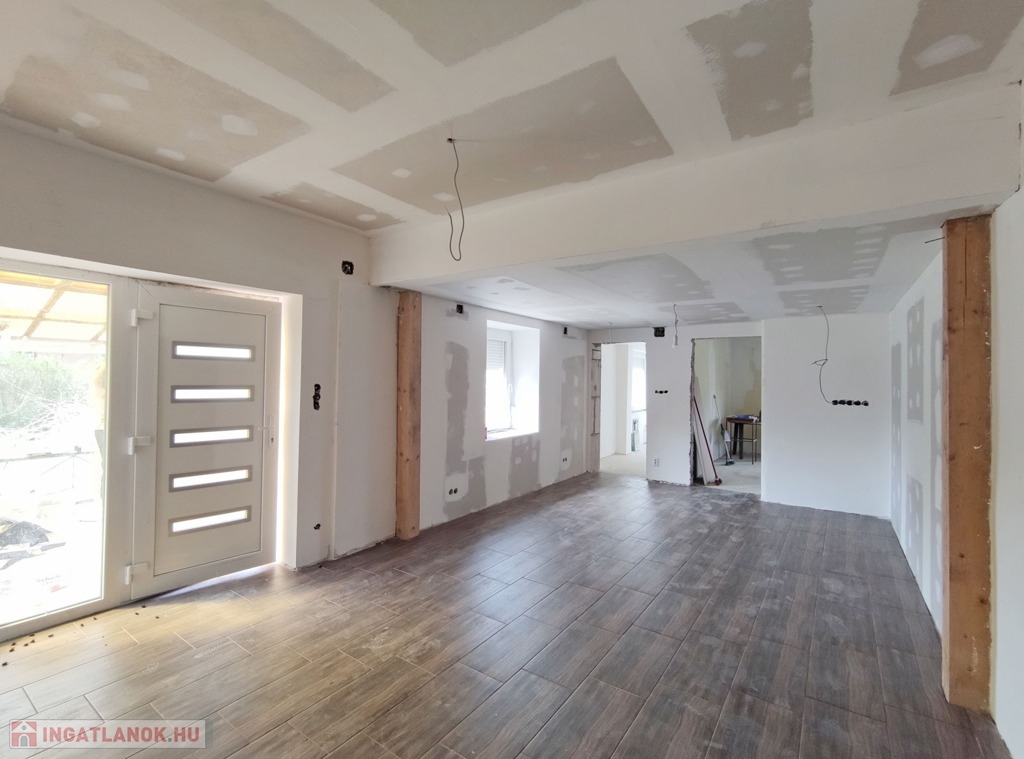 Megvételre kínálok Dánszentmiklóson, a főútra merőleges kis utcájában, a Köztársaság utcában, csendes, forgalomtól mentes környéken, családi házas övezetben, 1079 nm alapterületű önálló telken álló, 1968-ban épült 1 szintes, 60 nm-es, 2 egész és 1 félszobás, elő- és hátsókertes, korszerűsített családi házat, több gépkocsi számára alkalmas beállóval, nyári konyhának vagy lakrésznek is alkalmas melléképülettel, egyéb melléképülettel, az egyik kisebb melléképület alatti kis pincével, kerttel és udvarral, részben befejezett felújítással, melynek befejezése már az új tulajdonosra vár.