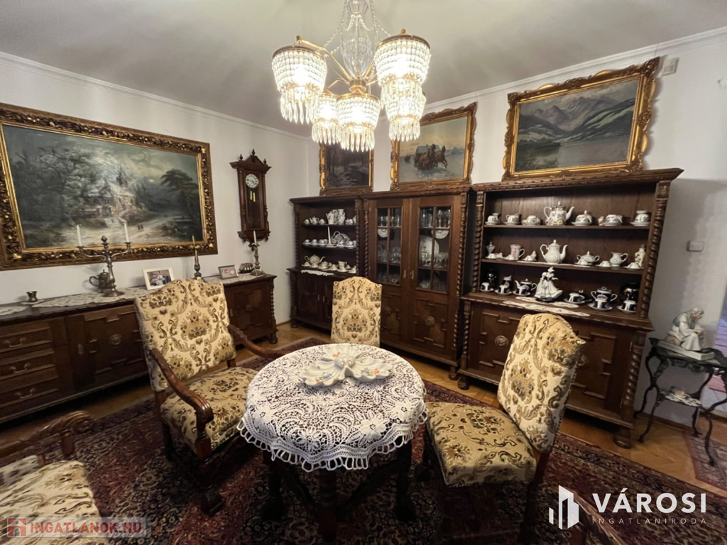 Debrecen Déli ipari parkjához közel, a kerekes telepen, 200 nm-es 4 szoba, 2 nappalis, összkomfortos nagy két szintes ház eladó. Az ingatlan méretei miatt befektetésnek is kiváló lehet, mert könnyen kialakítható benne akár 8 szoba is, szintenként 4 szoba. A kert szépen rendben tartott parkosított, melléképületekkel tarkított, és egy nagyméretű dupla garázs és kinti wc is található rajta. A fűtést gázkazán biztosítja radiátorokkal, a lakók kényelmét pedig, automata nagykapu és garázskapuk is biztosítják.