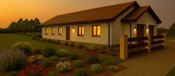 -az épület padlószerkezete alá 12 cm-es, zárófödémre 40 cm-es ásványgyapot, a fal szerkezetre 15 cm vastagságú polisztirol vagy 12 cm vastagságú grafitos hőszigetelés kerül, nemes vakolat fedéssel