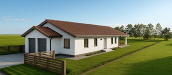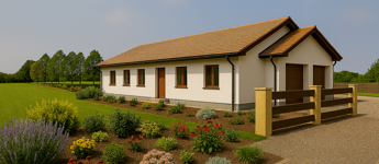 -földszintes kivitel, közel 100 nm-es nettó lakótér, az összes fedett terület pedig a garázzsal és a fedett terasszal együtt 130,2 nm.