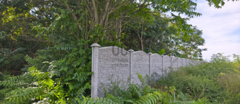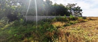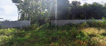 A terület körbe van kerítve, újszerű kerítéssel, az udvarrész fákkal, cserjékkel benőtt.