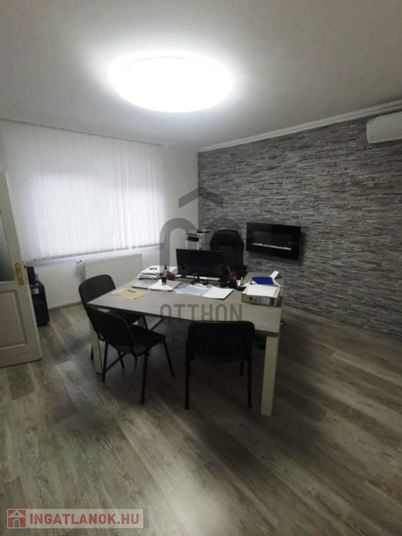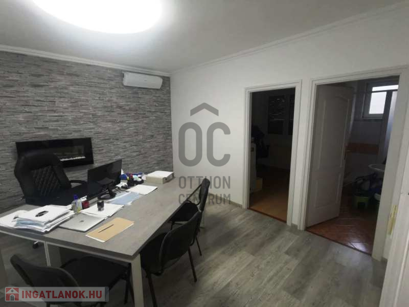 A jelenleg irodaként használt egyszintes ingatlan nappali + 4 szobás, nagy konyhával, 2 fürdőszobával és 2 külön WC-vel, garázzsal rendelkezik. Nyílászárói műanyagok ( redőnyökkel, rovarhálóval ), fűtése gáz-cirkós, okos rendszerrel kiegészítve. Hűtését klíma berendezések biztosítják.