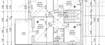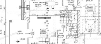 Teraszok: alsó szinten fedett terasz 16,80m2, emeleti terasz 13,22m2