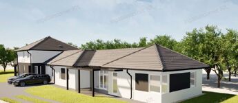 - FÖDÉMEN: 30cm-es (URSA) üveggyapot szigeteléssel, antracit színű beton cserepezéssel, antracit szinterezett eresz csatornával, telken elhelyezett szikkasztóba vezetve.